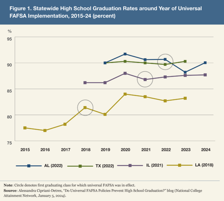 [9] Alessandra Cipriani-Detres, “Do Universal FAFSA Policies Prevent High School Graduation?” blog (National College Attainment Network, January 5, 2024).