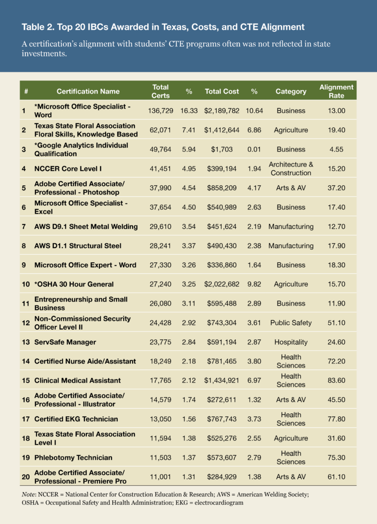 [21] Texas Education Agency, “Industry-Based Certifications.”